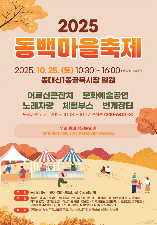 ºÎ»ê ¼±¸ µ¿´ë½Å1µ¿ ÁÖ¹ÎÀÚġȸ(À§¿øÀå À弼ȯ)¿Í »õ¶ã¸¶À» ÁÖ¹ÎÇùÀÇü(À§¿øÀå ÀÌâ±Ô)´Â ¿À´Â 10¿ù 25ÀÏ µ¿´ë½Å1µ¿°ñ¸ñ½ÃÀå ÀÏ¿ø¿¡¼ ¡®2025³â µ¿¹é¸¶À»ÃàÁ¦¡¯¸¦ °³ÃÖÇÑ´Ù.