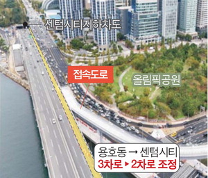 ºÎ»ê½Ã´Â 30ÀϺÎÅÍ ±¤¾È´ë±³ ¿ëÈ£µ¿~¼¾ÅÒ½ÃÆ¼ ¹æ¸éÀÇ Á÷Áø Â÷·Î°¡ 3Â÷·Î¿¡¼ 2Â÷·Î·Î ÁÙ¾îµç´Ù°í 28ÀÏ ¹àÇû´Ù. À̹ø Â÷·Î Á¶Á¤Àº ¿ÃÇØ ¸» ¿Ï°øµÇ´Â ±¤¾È´ë±³ Á¢¼Óµµ·Î ·¥ÇÁ±³·® °³ÅëÀ» ¾ÕµÎ°í ÀÌ·ïÁø´Ù. ÀÌ ±³·®ÀÇ Á¶¼ºÀ¸·Î Á¾Àü ÇØ¿î´ë±¸ Àå»ê·Î¿¡¼ ¿øµ¿IC ¹æÇâÀ¸·Î À̵¿ÇÏ´Â Â÷·®Àº ¿Ã¸²Çȱ³Â÷·Î³ª ¼¾ÅÒ½ÃÆ¼±³Â÷·Î¸¦ °ÅÄ¡Áö ¾Ê°í °ð¹Ù·Î ¼¾ÅÒ½ÃÆ¼ ÁöÇÏÂ÷µµ·Î °¥ ¼ö ÀÖ´Ù. ±³·®¿¡¼ ¼¾ÅÒ½ÃÆ¼ ÁöÇÏÂ÷µµ·Î ³»·Á¿À´Â Â÷·®ÀÌ ±¤¾È´ë±³ 3Â÷·Î·Î ÁøÀÔÇÏ´Â ¸¸Å ¿ëÈ£µ¿¿¡¼ ¼¾ÅÒ½ÃÆ¼ ÁöÇÏÂ÷µµ·Î À̵¿ÇÏ´Â ±¤¾È´ë±³ À§ Â÷·®°úÀÇ Á¢ÃË »ç°í¸¦ ¿¹¹æÇϱâ À§ÇØ Â÷·Î¸¦ ÁÙÀÌ´Â °ÍÀÌ´Ù.
