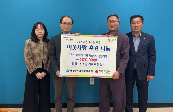 ºÎ»ê µ¿·¡±¸ ¸íÀå1µ¿ ÇàÁ¤º¹Áö¼¾ÅÍ(µ¿Àå ±è¼º¿í)´Â Áö³ 29ÀÏ ¸íÀå1µ¿ ÁÖ¹ÎÀÚÄ¡À§¿øÈ¸(À§¿øÀå ±Ç¿Àµæ)°¡ ¾î·Á¿î ÀÌ¿ôÀ» µ½±â À§ÇØ¡®¿ì¸®µ¿·¡(ÔÔÕÑ)õ»ç¸¦ ã½À´Ï´Ù¡¯Ä·ÆäÀο¡ ¼º±Ý 100¸¸ ¿øÀ» ±âŹÇß´Ù°í ¹àÇû´Ù.