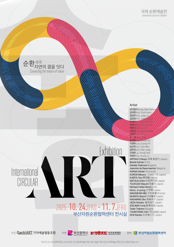 ¡®ÀÚ¿¬ÀÇ °áÀ» ÀÕ´Ù(Connecting the Texture of Nature)¡¯¶ó´Â ÁÖÁ¦·Î Áö³ 24ÀϺÎÅÍ ÀÚ¿ø¼øÈ¯Çù·Â¼¾ÅÍ 1Ãþ Àü½ÃÀå¿¡¼ ¿¸®°í ÀÖ´Â À̹ø Àü½Ã´Â Gachi(°¡Ä¡)¿¹¼úÇùµ¿Á¶ÇÕÀÌ ÁÖ°üÇÏ°í ºÎ»ê½Ã¿Í ºÎ»ê¹®ÈÀç´ÜÀÌ ÈÄ¿ø, ºÎ»êȯ°æ°ø´ÜÀÌ Çù·ÂÇϸç, ½Ã¹Î ´©±¸³ª ¹«·á·Î °ü¶÷°¡´ÉÇÏ´Ù.