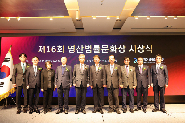 ¿µ»ê¹ý·ü¹®ÈÀç´Ü(ÀÌ»çÀå ÀÌÀκ¹)Àº Áö³ 29ÀÏ ¼¿ï ¿þ½ºÆ¾ Á¶¼±È£ÅÚ¿¡¼ ¡®Á¦16ȸ ¿µ»ê¹ý·ü¹®È»ó ½Ã»ó½Ä¡¯À» °³ÃÖÇϰí Á¤Àμ· ¸í¿¹±³¼ö¿¡°Ô »óÀ» ¼ö¿©Çß´Ù. À̳¯ ½Ã»ó½Ä¿¡´Â ¿µ»ê´ëÇб³ ºÎ±¸¿í ÃÑÀåÀ» ºñ·ÔÇØ ¿ª´ë ¼ö»óÀÚ, ¹ýÁ¶°è ¹× Çаè ÀλçµéÀÌ Âü¼®ÇØ ÀÚ¸®¸¦ ºû³Â´Ù.