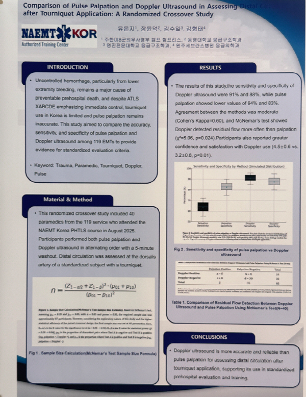 ºÎ»ê µ¿¸í´ë ÀÀ±Þ±¸Á¶Çаú¿Í ¿øÁÖ¼¼ºê¶õ½ºº´¿ø ÀÀ±ÞÀÇÇаú, ±¹Á¦ ÀÀ±ÞÀÇ·á±³À°±â°ü NAEMT Korea°¡ °øµ¿À¸·Î ¼öÇàÇÑ ÁöÇ÷´ë Àû¿ë Á¤È®µµ Çâ»ó ¿¬±¸°¡ ´ëÇÑÀÀ±ÞÀÇÇÐȸ Çмú´ëȸ¿¡ ÃÊ·ÏÀ¸·Î ¼±Á¤µÆ´Ù. ÀÌ ¿¬±¸´Â NAEMT¿Í ¿øÁÖ¼¼ºê¶õ½ºº´¿ø°£ MOU ü°á ÀÌÈÄ µµÃâµÈ ù °ø½Ä ¿¬±¸ ¼º°ú´Ù. ¿¬±¸ÆÀ¿¡´Â NAEMT PHTLS °»çÁøÀ¸·Î Ȱµ¿ÁßÀÎ ¿µÁøÀü¹®´ëÇб³ ±è¼öÀÏ ±³¼ö, NAEMT Korea À¯ÀºÁö ´ëÇ¥, ¿øÁÖ¼¼ºê¶õ½ºº´¿ø ÀÀ±ÞÀÇÇаú ±èÇüÅ ±³¼ö, µ¿¸í´ëÇб³ ÀåÀ±´ö ±³¼ö µîÀÌ Âü¿©Çß´Ù.
