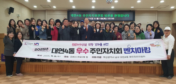 ºÎ»ê ³²±¸ ´ë¿¬4µ¿ ÁÖ¹ÎÀÚÄ¡À§¿øÈ¸(À§¿øÀå ÃÖ¿µ½Ç)´Â Áö³ 5ÀÏ ±èÇØ½Ã ÀåÀ¯2µ¿ ÁÖ¹ÎÀÚġȸ(ȸÀå Áø¿µÈ£)¸¦ ¹æ¹®ÇÏ¿© ¿ì¼ö ÁÖ¹ÎÀÚġȸ º¥Ä¡¸¶Å·À» ½Ç½ÃÇÏ¿´´Ù.
