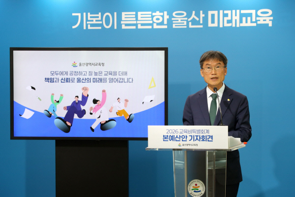 | õâ¼ö ¿ï»ê½Ã±³À°°¨ÀÌ 10ÀÏ ½Ã±³À°Ã» ÇÁ·¹½º¼¾ÅÍ¿¡¼ 2026³â º»¿¹»ê¾È Æí¼º°ú °ü·ÃÇØ ±âÀÚȸ°ßÀ» Çϰí ÀÖ´Ù. ¿ï»ê½Ã±³À°Ã» Á¦°ø