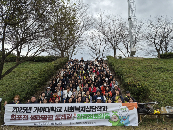 °¡¾ß´ëÇб³ »çȸº¹Áö»ó´ãÇаú(ÇаúÀå ȲÀοÁ)´Â Áö³ 11¿ù 8ÀÏ(Åä) ±èÇØ ÈÆ÷õ »ýŰø¿ø ÀÏ¿ø¿¡¼ ¡®ÈÆ÷õ µÑ·¹±æ °È±â Çà»ç¡¯¸¦ °³ÃÖÇß´Ù. À̹ø Çà»ç´Â »çȸº¹Áö»ó´ãÇаú ±³¼öÁø°ú ÀçÇлý, ´ëÇÐ °ü°èÀÚ µî 160¿© ¸íÀÌ ÇÔ²² Âü¿©ÇØ ÈÆ÷õ µÑ·¹±æÀ» °ÉÀ¸¸ç ÀÚ¿¬À» üÇèÇϰí ȯ°æÁ¤È Ȱµ¿À» ÆîÃÆ´Ù.
