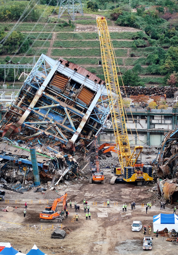 Áö³­ 12ÀÏ ¿ÀÈÄ ¿ï»êÈ­·Â¹ßÀü¼Ò º¸ÀÏ·¯Å¸¿ö(5È£±â)¿¡¼­ Ãß°¡ ºØ±«¸¦ ¸·±â À§ÇØ Å©·¹ÀÎÀ¸·Î »óºÎ ±¸Á¶¹°À» °íÁ¤ÇÑ µÚ ÁßÀåºñ°¡ ÁøÀԷθ¦ È®º¸ÇÏ´Â ¸ð½À. ¿¬ÇÕ´º½º