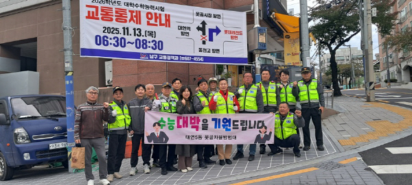 ºÎ»ê ³²±¸ ´ë¿¬5µ¿ ¸ø°ñÀÚÀ²¹æ¹ü´ë(´ëÀå Á¶ÀçÈ£)´Â 11¿ù 13ÀÏ(¸ñ) ¿ÀÀü 6½Ã 30ºÐºÎÅÍ 8½Ã±îÁö 2026Çг⵵ ´ëÇмöÇдɷ½ÃÇè ¼öÇè»ýÀ» À§ÇÑ ¼ö¼Û ¹× °Ý·Á ºÀ»çȰµ¿À» ½Ç½ÃÇß´Ù.