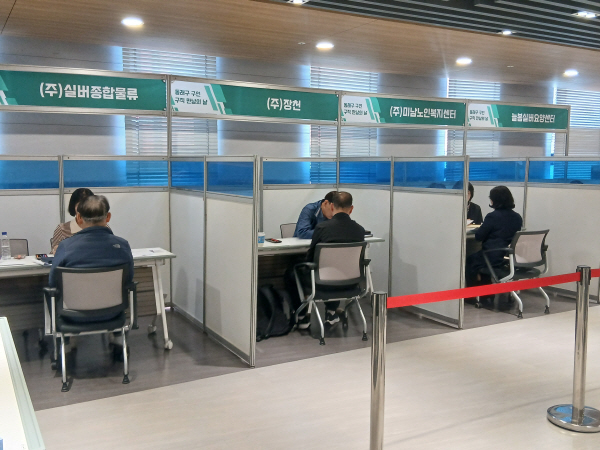 À̹ø Çà»ç¿¡´Â »çÀüÁ¢¼ö¸¦ ¹ÞÀº ÁßÀå³â ±¸Á÷ÀÚ 60¿© ¸íÀÌ Âü¿©ÇÏ¿© °æºñ¡¤¹ÌÈ, »çȸº¹Áö, ¹°Ç°¿î¼Û, Á¶¸® ºÐ¾ßÀÇ 6°³ ±¸ÀÎ ¾÷ü¿Í 1:1 ÇöÀå ¸éÁ¢À» ÁøÇàÇß´Ù. ¾Æ¿ï·¯ Ãë¾÷ »ó´ã, À̷¼ ÀÛ¼º ÄÁ¼³ÆÃ, Áõ¸í»çÁø ÃÔ¿µ, Á¤Àå ´ë¿© µî ´Ù¾çÇÑ ºÎ´ëÇà»çµµ ÇÔ²² ¿î¿µµÆ´Ù.