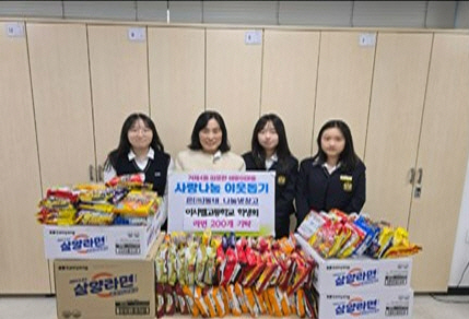 ¿¬Á¦±¸ °ÅÁ¦4µ¿(µ¿Àå ¾È¹Ì¾Ö)Àº 11¿ù 10ÀÏ À̻级°íµîÇб³ Çлýµé·ÎºÎÅÍ Áö¿ªÀÇ ¾î·Á¿î ÀÌ¿ôµéÀ» À§ÇÑ ½Ä·áǰ(¶ó¸é 200°³)À» ÈÄ¿ø¹Þ¾Ò´Ù.