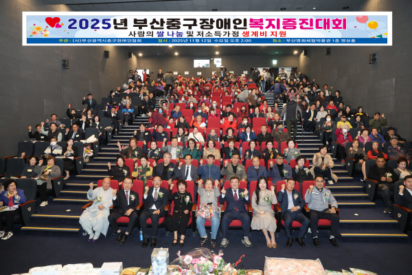 ºÎ»ê Áß±¸(±¸Ã»Àå ÃÖÁøºÀ)´Â Áö³ 12ÀÏ ºÎ»ê¿µÈüÇè¹Ú¹°°ü ¿µ»óȦ¿¡¼ Áß±¸ Àå¾ÖÀΰú °¡Á·, ÀÚ¿øºÀ»çÀÚ, ÈÄ¿øÀÚ µîÀÌ Âü¼®ÇÑ °¡¿îµ¥ (»ç)Áß±¸Àå¾ÖÀÎÇùȸ ÁÖ°üÀ¸·Î ¡®2025³â Àå¾ÖÀκ¹ÁöÁõÁø´ëȸ¡¯¸¦ °³ÃÖÇÏ¿´´Ù.