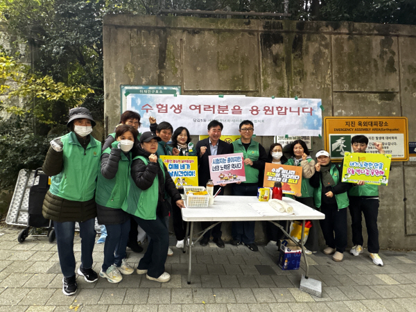 ºÎ»êÁø±¸ ´ç°¨1µ¿ »õ¸¶À»ºÎ³àȸ¿Í »õ¸¶À»ÁöµµÀÚÇùÀÇȸ´Â 11¿ù 13ÀÏ ´ëÇмöÇдɷ½ÃÇè ¼öÇèÀåÀÎ °æ¿ø°íµîÇб³ ÀÔ±¸¿¡¼ ¼öÇè»ý°ú ±³ÅëºÀ»çÀÚ¿¡°Ô ºÀ»çȰµ¿À» Àü°³ÇÏ¿´´Ù.