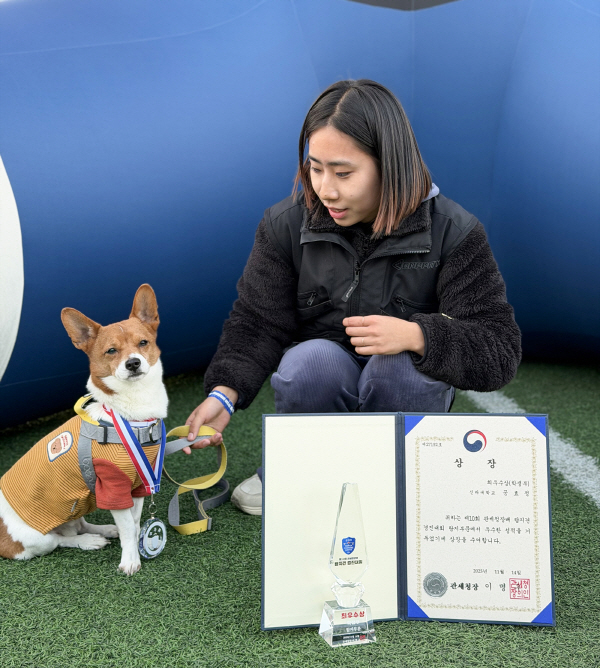 | °ü¼¼Ã»Àå¹è ŽÁö°ß °æÁø´ëȸ¿¡¼ ÃÖ¿ì¼ö»óÀ» ¹ÞÀº ½Å¶ó´ë ¹Ý·Áµ¿¹°Çаú °øÈ¿Á¤ Çлý°ú ¹Ý·Á°ß ¡®¾ËÄáÀÌ¡¯. ½Å¶ó´ë Á¦°ø