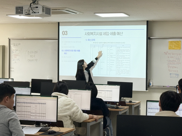 ÁÖÇýÁ¤ ¼¾ÅÍÀåÀº ¡â¿¹»ê¡¤È¸°è ½Ç¹« ±âÃÊ ¡â¿¢¼¿ ±â¹Ý ¹®¼ ÀÛ¼º ¹× ÀÚ·á Á¤¸® ¡â±â°ü ¿¹»ê ¼ö¸³¡¤ÁöÃâ °ü¸® ½ÃÆ® ½Ç½À µî º¹Áö±â°üÀÇ ÇàÁ¤¾÷¹«¿¡ ÇʼöÀûÀÎ ¿¹»ê Æí¼º°ú ÁöÃâ °ü¸® ´É·Â °È¸¦ ¸ñÀûÀ¸·Î ½Ç¹«Áß½ÉÀÇ ±³À°À» ÁøÇàÇß´Ù.