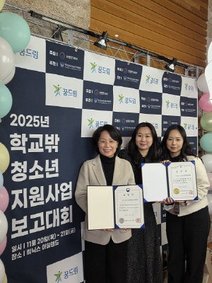 À̳¯ º¸°í´ëȸ¿¡¼´Â Á¾ÇÕÆò°¡ ¿ì¼ö±â°ü ¼±Á¤¿¡ ´õÇØ, »çÇϱ¸Çб³¹Ûû¼Ò³âÁö¿ø¼¾ÅͰ¡ û¼Ò³â¾ÈÀü¸Á½Ã½ºÅÛ È°¿ë ¿ì¼ö±â°üÀ¸·Îµµ ¼±Á¤µÇ¾î Çѱ¹Ã»¼Ò³â»ó´ãº¹Áö°³¹ß¿ø ÀÌ»çÀå ǥâÀ» Ãß°¡·Î ¼ö»óÇß´Ù. À̸¦ ÅëÇØ »çÇϱ¸¼¾ÅͰ¡ Çб³ ¹Û û¼Ò³âÀ» À§ÇÑ ¸ÂÃãÇü Áö¿ø±â°üÀ¸·Î¼ µÎ°¢À» ³ªÅ¸³»°í ÀÖÀ½À» È®ÀÎÇß´Ù.