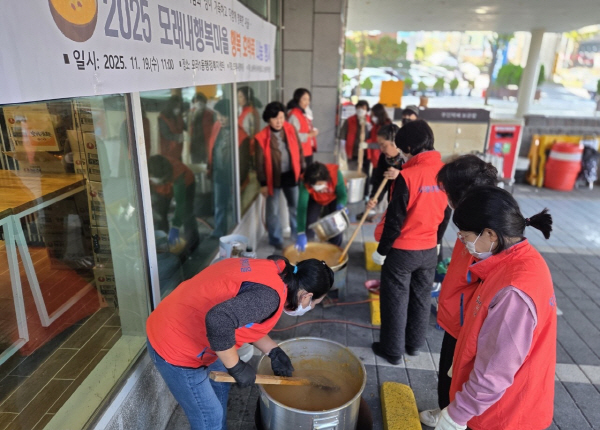 À̹ø Çà»ç´Â ¸ð·¡³»Çູ¸¶À»¿î¿µÀ§¿øÈ¸¿Í ÅëÀåÇùÀÇȸ ȸ¿øµéÀÌ ¸ð¶óÀüÅë½ÃÀå¿¡¼ ±¸ÀÔÇÑ ½ÄÀç·á·Î Á÷Á¢ È£¹ÚÁ× 300±×¸©À» Á¤¼º²¯ ÁغñÇØ ¾î·Á¿î ÀÌ¿ôµé¿¡°Ô Àü´ÞÇÏ¸ç ¾ÈºÎ¸¦ »ìÇÇ´Â µû¶æÇÑ Áö¿ª ³ª´® Ȱµ¿À¸·Î ÁøÇàµÆ´Ù.