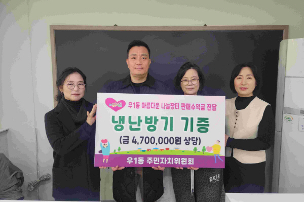 ÇØ¿î´ë±¸ ¿ì1µ¿ ÁÖ¹ÎÀÚÄ¡À§¿øÈ¸(À§¿øÀå À念±¹)´Â Áö³ 20ÀÏ ¿ì1µ¿¡®¾Æ¸§´Ù¿î ³ª´®ÀåÅÍ¡¯¿¡¼ ¸¶·ÃµÈ ÆÇ¸Å¼öÀͱÝÀ¸·Î ¿¹¼±Áö¿ª¾Æµ¿¼¾ÅÍ¿¡ 470¸¸ ¿ø »ó´çÀÇ ³Ã³¹æ±â¸¦ ±âŹÇß´Ù.
