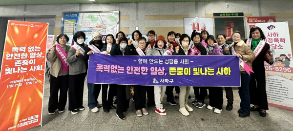 »çÇϱ¸(±¸Ã»Àå À̰©ÁØ)´Â ¿©¼ºÆø·Â Ãß¹æÁÖ°£(11.25.~12.1.)À» ¸Â¾Æ Áö³ 26ÀÏ, ÇÏ´Ü¿ª ÀÏ´ë¿¡¼ »çÇϰ¡Á¤Æø·Â»ó´ã¼Ò(¼ÒÀå ÀÌÇʼ÷)¿Í »çÇϱ¸¿©¼º´Üü ȸ¿øÀÌ ÇÔ²²ÇÏ´Â ¿©¼ºÆø·Â ¿¹¹æ ÇÕµ¿ Ä·ÆäÀÎÀ» ÁøÇàÇß´Ù.