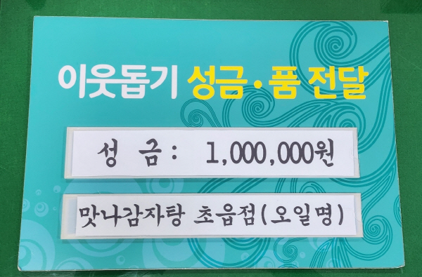 ¸À³ª°¨ÀÚÅÁ ÃÊÀ¾Á¡(´ëÇ¥ ¿ÀÀϸí)Àº Áö³ 1ÀÏ ºÎ»êÁø±¸ ÃÊÀ¾µ¿(µ¿Àå Á¤°£È£)¿¡ ¿¬¸»À» ¸ÂÀÌÇÏ¿© ÀÌ¿ôµ½±â¼º±Ý 100¸¸ ¿øÀ» Àü´ÞÇß´Ù.