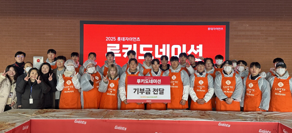 ¡®»ç¶ûÀÇ ±èÀå ´ã±×±â Çà»ç¡¯¿¡ À̾î ÁøÇàµÈ ÈÄ¿ø±Ý Àü´Þ½Ä¿¡¼´Â ·Ôµ¥ÀÚÀ̾ðÃ÷°¡ ºÎ»ê±¤¿ª½Ãû¼Ò³âÀÚ¸³Áö¿ø°ü(È¥ÇÕÇü)¿¡ 2000¸¸ ¿øÀ» Àü´ÞÇß´Ù.