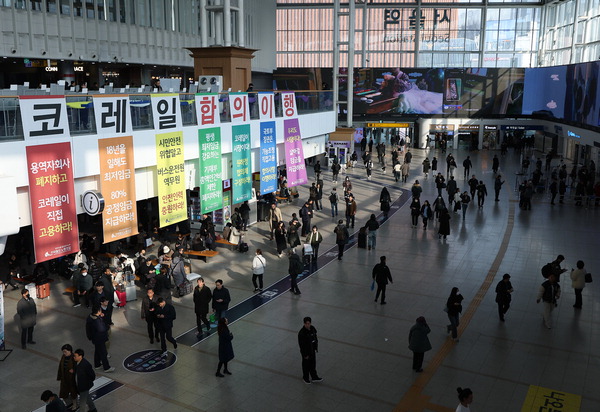 | Çѱ¹Ã¶µµ°ø»ç ³ëÁ¶°¡ 11ÀÏ ¿ÀÀü 9½ÃºÎÅÍ ¹«±âÇÑ ÆÄ¾÷¿¡ µ¹ÀÔÇÑ´Ù°í ¿¹°íÇÑ °¡¿îµ¥ 10ÀÏ ¼¿ï¿ª¿¡ ¡®ÄÚ·¹ÀÏ ÇÕÀÇÀÌÇ࡯À̶ó ÀûÈù ³ëÁ¶ Ãø Çö¼ö¸·ÀÌ °É·Á ÀÖ´Ù. ¿¬ÇÕ´º½º |