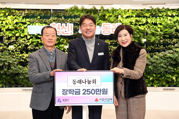 ºÎ»ê µ¿·¡±¸(±¸Ã»Àå ÀåÁØ¿ë)´Â Áö³ 9ÀÏ µ¿·¡³ª´®È¸(ȸÀå ¹ÚÁ¾µµ)·ÎºÎÅÍ Áö¿ª»çȸÀÇ ¹ßÀü°ú ¹Ì·¡ ¼¼´ë À°¼ºÀ» À§ÇÑ ÀåÇÐ±Ý 250¸¸ ¿øÀ» Áö¿ø¹Þ¾Ò´Ù°í ¹àÇû´Ù. À̹ø ÀåÇÐ±Ý ¼ö¿©½ÄÀº µ¿·¡±¸Ã» 5Ãþ ·Îºñ¿¡¼ ÁøÇàµÇ¾úÀ¸¸ç, ¼ö¹Îµ¿Àå°ú º¹»êµ¿Àåµµ ÇÔ²² Àü´Þ½Ä¿¡ Âü¼®ÇÏ¿© ¶æ±íÀº ½Ã°£À» °¡Á³´Ù.