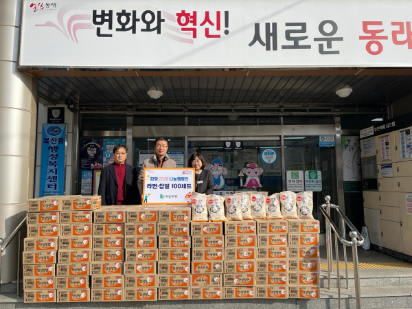 ºÎ»ê µ¿·¡±¸ º¹»êµ¿ ÇàÁ¤º¹Áö¼¾ÅÍ(µ¿Àå Á¦Àº¹Ì)´Â Áö³ 10ÀÏ ³»¼º±³È¸(´ãÀÓ¸ñ»ç ³²°Ç¿ì)·ÎºÎÅÍ ¶ó¸é 100¹Ú½º, Âý½Ò(2.5kg) 100Æ÷¸¦ Àü´Þ¹Þ¾Ò´Ù°í ¹àÇû´Ù.