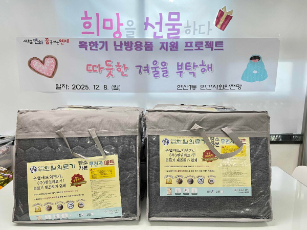 ¿¬Á¦±¸ ¿¬»ê1µ¿(µ¿Àå À̼ö¿µ)Àº 12¿ù 8ÀÏ ¹Î°£»çȸ¾ÈÀü¸Á(À§¿øÀå ·ù¿Üµµ)¿¡¼ ±âŹÇÑ ³¹æ¿ëǰ(Àü±â¸ÅÆ®)À» Àú¼ÒµæÃþ, ÇѺθð°¡Á· µî Ãë¾à°èÃþ 10°¡±¸¿¡ Àü´ÞÇß´Ù.