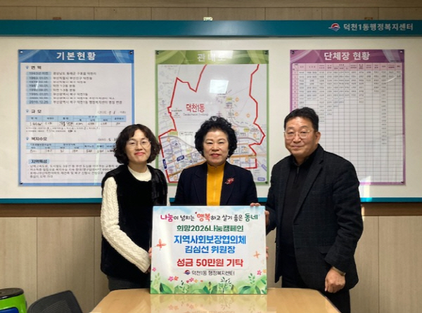 ºÎ»ê ºÏ±¸ ´öõ1µ¿ Áö¿ª»çȸº¸ÀåÇùÀÇü ±è½É¼± À§¿øÀåÀº Áö³ 12ÀÏ, °ü³» Ãë¾à°èÃþÀ» À§ÇØ ´öõ1µ¿ ÇàÁ¤º¹Áö¼¾ÅÍ¿¡ ¡ºÈñ¸Á2026³ª´®Ä·ÆäÀΡ» ¼º±Ý 50¸¸ ¿øÀ» ±âŹÇÏ¿´´Ù°í ¹àÇû´Ù.