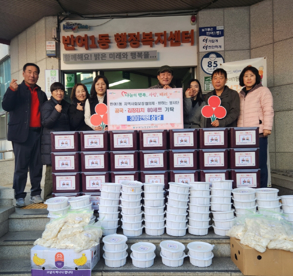 ÇØ¿î´ë±¸ ¹Ý¿©1µ¿ Áö¿ª»çȸº¸ÀåÇùÀÇü(°ø°øÀ§¿øÀå ¹ÚÇöÁÖ, ¹Î°£À§¿øÀå ³ëÁøÇÏ)¿Í ¹ÝÇÏ´Â ºÀ»ç´Ü(´ÜÀå ÀÌ»óÁø)Àº 12¿ù 15ÀÏ, °õ±¹ 1.5L 80Åë°ú ±èÀå±èÄ¡ 400kgÀ» ¹Ý¿©1µ¿ ÇàÁ¤º¹Áö¼¾ÅÍ(µ¿Àå ¹ÚÇöÁÖ)¿¡ ±âŹÇß´Ù.