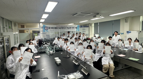 À̹ø Ãâ¹ßÀÓ»óº´¸®»ç ÇöÀå½Ç¹«Çü Àü°ø´É·Â Çâ»ó ºñ±³°úÇÁ·Î±×·¥À» ÁÖ°üÇÑ Áø´Ü°Ë»ç¿¬±¸¼¾ÅÍÀå ±è¼ºÇö ±³¼ö´Â ¡°1Çгâ ÇлýµéÀ» ´ë»óÀ¸·Î, ÀÓ»óº´¸®»ç¿¡ ´ëÇÑ µ¿±â À¯¹ß°ú ÀÓ»óº´¸®»ç·Î½á Áø´Ü°Ë»çÀÇÇаú ÀÓ»ó°Ë»ç½Ç¿¡¼ °¡Àå ±âº»ÀûÀ¸·Î ½ÃÇàÇϰí Àִ äÇ÷, ÀÏ¹Ý Ç÷¾×°Ë»ç(CBC), ÀÓ»ó»ýÈÇа˻ç(°£±â´É, ÁöÁú, ´Ü¹éÁú, ´ç µî), ¿ä °Ë»ç µî °¡Àå ÀϹÝÀûÀ̸ç ÇʼöÀûÀÎ Áø´Ü°Ë»ç¸¦ ÇлýµéÀÌ Á÷Á¢ ½ÇÇè½Ç½ÀÀ» ÅëÇØ üÇèÇØº¸°Ô Çϱâ À§ÇØ ÁøÇà µÇ¾úÀ¸¸ç 1Çгâ Àüü ÀçÇлýÀÇ 90%°¡ ³Ñ´Â ÀοøÀÌ ÀÚ¹ßÀûÀ¸·Î º» ÇÁ·Î±×·¥¿¡ Âü¿©ÇÏ¿© ¸ðµç °úÁ¤À» À̼öÇÑ ÇлýµéÀÇ ¿Á¤¿¡ ¹Ú¼ö¸¦ º¸³½´Ù¡±°í ¹àÇû´Ù.
