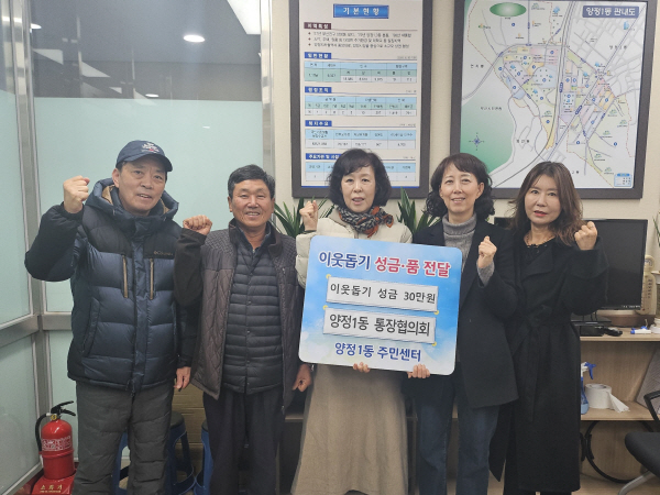 ºÎ»êÁø±¸ ¾çÁ¤1µ¿ ÅëÀåÇùÀÇȸ(ȸÀå °í¿µÀÚ)´Â 24ÀÏ ¾çÁ¤1µ¿ Áֹμ¾ÅÍ(µ¿Àå ¿À¸í¿Á)¸¦ ã¾Æ Áö¿ª ³» Àú¼Òµæ °¡Á¤À» À§ÇÑ ÀÌ¿ôµ½±â ¼º±Ý 30¸¸¿øÀ» Àü´ÞÇß´Ù.