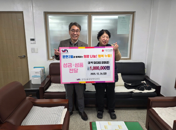 ºÎ»ê ³²±¸ ¹®Çö2µ¿ ¼ÒÀç À½½ÄÁ¡ ´ë¹ÚÁý(´ëÇ¥ Àå¹Ì°æ)Àº Áö³ 12¿ù 26ÀÏ Áö¿ª ³» ¾î·Á¿î ÀÌ¿ôÀ» µ½±â À§ÇØ ¼º±Ý 100¸¸ ¿øÀ» ¹®Çö2µ¿ÇàÁ¤º¹Áö¼¾ÅÍ(µ¿Àå °ÇöÁ¶)¿¡ Àü´ÞÇß´Ù.