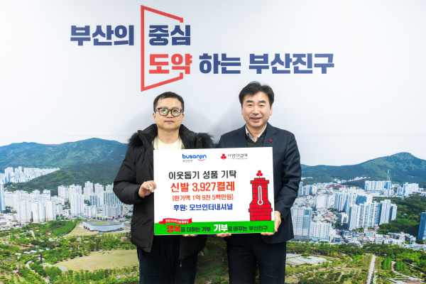 ¸ðºêÀÎÅͳ»¼Å³Î(´ëÇ¥ ±èÈñÁ¾)Àº 12¿ù 29ÀÏ, ºÎ»êÁø±¸Ã»(±¸Ã»Àå ±è¿µ¿í)À» ¹æ¹®ÇÏ¿© ÀÌ¿ôµ½±â ¼ºÇ°À¸·Î ½Å¹ß 3,927ÄÓ·¹¸¦ Àü´ÞÇß´Ù.