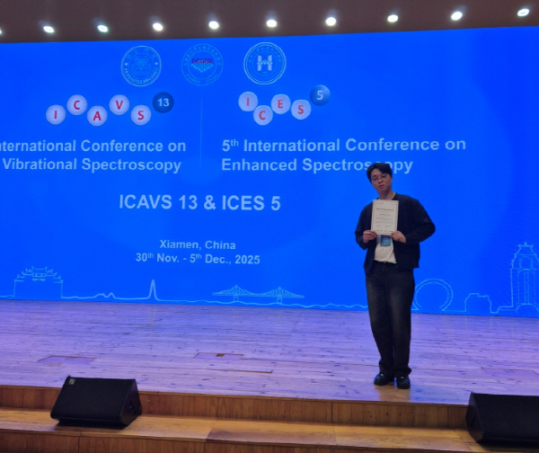 µ¿¾Æ´ëÇб³(ÃÑÀå ÀÌÇØ¿ì)´Â ÈÇаøÇаú ¼®¹ÚÅëÇÕ°úÁ¤¿¡ ÀçÇÐ ÁßÀÎ ¾çÁØ¿µ ´ëÇпø»ýÀÌ ÃÖ±Ù Áß±¹ »þ¸Õ¿¡¼ ¿¸° ¡®ICAVS13(13th international conference on Advanced vibrational spectroscopy) &The 5th International Conference on Enhanced Spectroscopy (ICES5)¡¯ ±¹Á¦ ÇÐȸ¿¡¼ ¿ì¼öÆ÷½ºÅÍ»óÀ» ¹Þ¾Ò´Ù°í ¹àÇû´Ù.