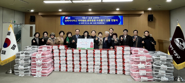 Áö³ 29ÀÏ »ç»ó±¸Ã» ¿µ»óȸÀǽǿ¡¼ ½Å¶ó´ë Æò»ý±³À°¿ø ±è¼ø¼® ¿øÀå°ú ºÎ»ê½Ã Á¶º´±æ »ç»ó±¸Ã»Àå, ½Å¶ó ½Ã´Ï¾î½º ¾ÆÄ«µ¥¹Ì ¼Õ¿µÀÍ Ãѵ¿¹®È¸Àå ¹× µ¿¹®µéÀÌ Âü¼®ÇÑ °¡¿îµ¥ ½Å¶ó ½Ã´Ï¾î½º ¾ÆÄ«µ¥¹Ì Ãѵ¿¹®È¸°¡ »ç»ó±¸Ã»¿¡ ¶ó¸é°ú ÀÌºÒ µî 230¸¸¿ø »ó´çÀÇ ÀÌ¿ôµ½±â ¹°Ç°À» ±âŹÇß´Ù.