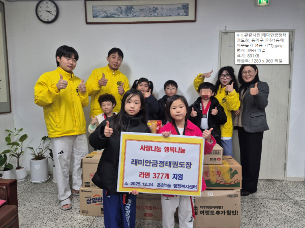 ºÎ»ê µ¿·¡±¸ ¿Âõ1µ¿ ÇàÁ¤º¹Áö¼¾ÅÍ(µ¿Àå Á¤Èñ¼÷)´Â Áö³ 12¿ù 24ÀÏ ·¡¹Ì¾È±ÝÁ¤Å±ǵµÀå(°üÀå ¹é½Âȯ) Àç¿ø»ýµé·ÎºÎÅÍ ¿¬¸»¿¬½Ã ¾î·Á¿î ÀÌ¿ôÀ» À§ÇÑ ¶ó¸é 362°³¸¦ Àü´Þ¹Þ¾Ò´Ù°í ¹àÇû´Ù.