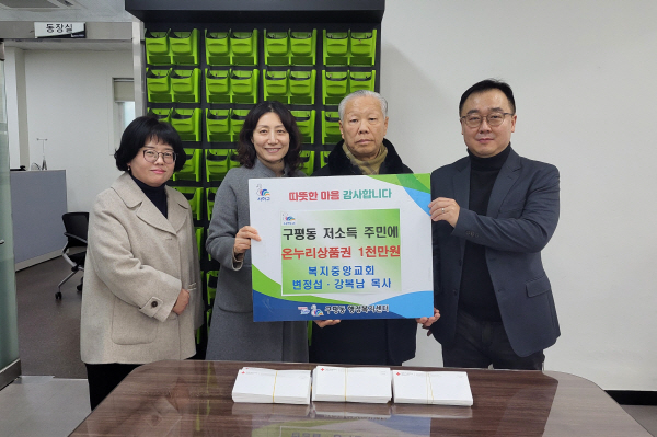 ºÎ»ê »çÇϱ¸ ±¸Æòµ¿ ÇàÁ¤º¹Áö¼¾ÅÍ´Â Áö³ 15ÀÏ ºÎ»êº¹ÁöÁß¾Ó±³È¸ º¯Á¤¼·¡¤°º¹³² ¸ñ»ç ºÎºÎ·ÎºÎÅÍ ¿Â´©¸®»óǰ±Ç 1õ¸¸ ¿øÀ» Àü´Þ¹Þ¾Ò´Ù°í ¹àÇû´Ù.