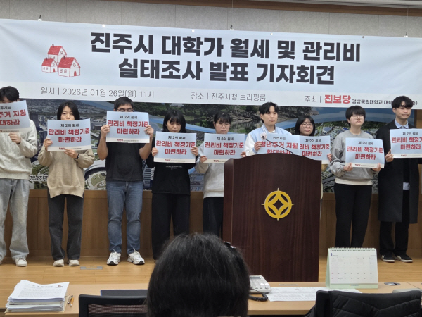 | Áøº¸´ç °æ»ó±¹¸³´ë ´ëÇлý À§¿øÈ¸´Â 26ÀÏ ÁøÁÖ½Ãû ºê¸®Çη뿡¼ ±âÀÚȸ°ßÀ» Çϰí ÁøÁֽà ´ëÇа¡ ¿ù¼¼ ¹× °ü¸®ºñ ½ÇÅÂÁ¶»ç¸¦ ¹ßÇ¥Çß´Ù.±èÀμö ±âÀÚ iskim@kookje.co.kr