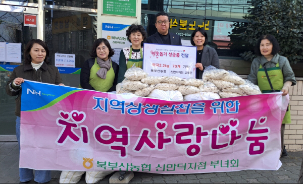 ºÎ»ê ºÏ±¸ ¸¸´ö2µ¿ ÇàÁ¤º¹Áö¼¾ÅÍ(µ¿Àå ÀÌÁ¤ÀÓ)´Â Áö³ 11ÀÏ ºÏºÎ»ê³óÇù ½Å¸¸´öÁöÁ¡ °íÇâÁֺθðÀÓ(ȸÀå ±è¼ø¾Ö)ÀÌ °ü³» ¾î·Á¿î ÀÌ¿ôµé¿¡°Ô Àü´ÞÇØ ´Þ¶ó¸ç ¶±±¹¶± (2.2kg) 70ºÀÀ» Àü´ÞÇß´Ù°í ¹àÇû´Ù.