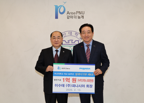 ºÎ»ê´ëÇб³(ÃÑÀå ÃÖÀç¿ø)´Â ģȯ°æ Á¶¼±±âÀÚÀç ºÐ¾ßÀÇ ¼±µµ ±â¾÷ÀÎ ¢ßÆÄ³ª½Ã¾Æ(PANASIA)ÀÇ Ã¢¾÷ÁÖÀÎ À̼öÅ ȸÀåÀÌ ºÎ»ê´ë ¹ßÀü±â±Ý 1¾ï ¿øÀ» 13ÀÏ ¿ÀÀü ´ëÇк»ºÎ 5Ãþ ÃÑÀå½Ç¿¡¼ Ã⿬Çß´Ù°í ¹àÇû´Ù.