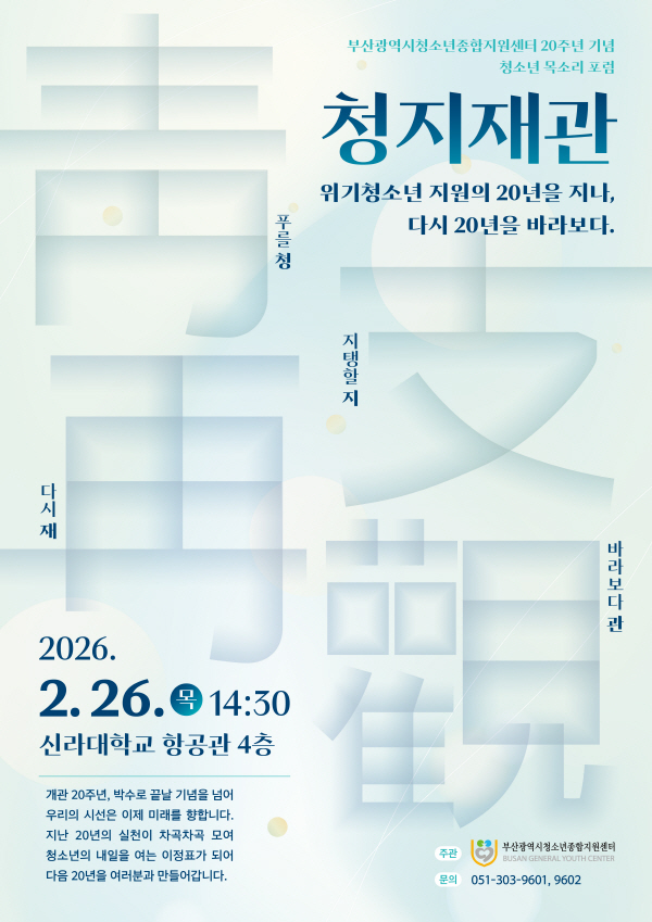 ½Å¶ó´ëÇб³(ÃÑÀå Çã³²½Ä) ¼öʱâ°üÀÌ ºÎ»ê±¤¿ª½Ãû¼Ò³âÁ¾ÇÕÁö¿ø¼¾ÅͰ¡ °³°ü 20ÁÖ³âÀ» ¸Â¾Æ û¼Ò³âÀÇ ¸ñ¼Ò¸®¸¦ Á¤Ã¥ ÇöÀå¿¡ ¿¬°áÇÏ´Â ±â³ä Æ÷·³À» °³ÃÖÇÑ´Ù°í ¹àÇû´Ù.