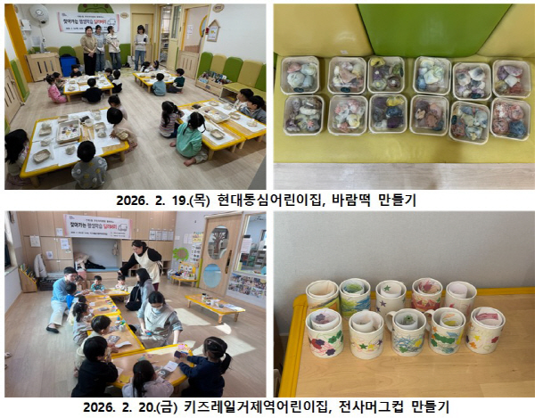 2¿ù 19ÀÏ¿¡´Â Çö´ëµ¿½É¾î¸°ÀÌÁý¿¡¼ ¡®¹Ù¶÷¶± ¸¸µé±â¡¯, 2¿ù 20ÀÏ¿¡´Â ŰÁî·¹ÀϰÅÁ¦¿ª¾î¸°ÀÌÁý¿¡¼ ¡®Àü»ç ¸Ó±×ÄÅ ¸¸µé±â¡¯ üÇè ¼ö¾÷ÀÌ ÁøÇàµÆ´Ù.