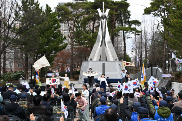 ƯÈ÷ Çà»çÀÇ ´ë¹Ì¸¦ Àå½ÄÇÑ¡®¸¸¼¼»ï⡯¼ø¼¿¡¼ Âü¼®ÀÚ Àü¿øÀÌ Å±ر⸦ Èçµé¸ç ¡®´ëÇѵ¶¸³¸¸¼¼!¡¯¸¦ ÈûÂ÷°Ô ¿ÜÃÄ, 107³â Àü ¹ÎÁ·ÀÇ ÀÚ±à½ÉÀ» ȸº¹Çß´ø ±× ³¯ÀÇ °¨µ¿À» ÀçÇöÇß´Ù.