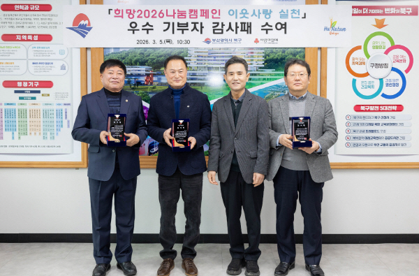 ºÎ»ê ºÏ±¸(±¸Ã»Àå ¿ÀÅ¿ø)´Â Èñ¸Á2026³ª´®Ä·ÆäÀÎ ±â°£ ÀÌ¿ô»ç¶û ½Çõ¿¡ ¾ÕÀå¼± ¿ì¼ö ±âºÎÀÚ¿¡°Ô ºÎ»ê»çȸº¹Áö°øµ¿¸ð±Ýȸ(ȸÀå À̼öÅÂ) °¨»çÆÐ¸¦ ¼ö¿©Çß´Ù°í ¹àÇû´Ù.
