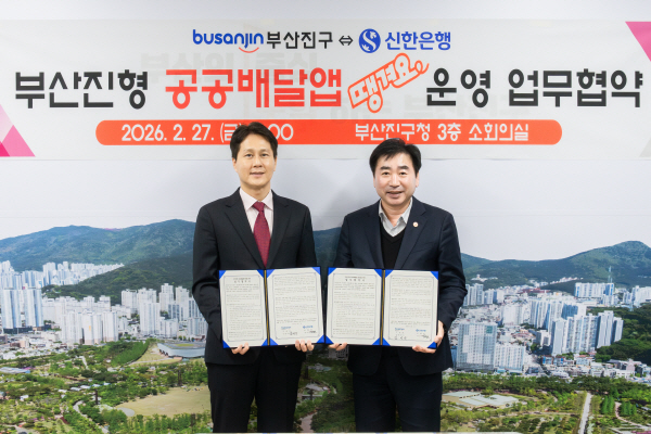 | ºÎ»êÁø±¸´Â ÃÖ±Ù ½ÅÇÑÀºÇà°ú °ø°ø¹è´Þ¾Û ¡®¶¯°Ü¿ä¡¯ ¿î¿µÀ» À§ÇÑ ¾÷¹«Çù¾àÀ» ü°áÇß´Ù°í ¹àÇû´Ù. »çÁøÀº ±è¿µ¿í ºÎ»êÁø±¸Ã»Àå(¿À¸¥ÂÊ)°ú ½ÅÇÑÀºÇà °ü°èÀÚ(¿ÞÂÊ)°¡ ¾÷¹«Çù¾à½Ä »çÀÎ ÈÄ ±â³äÃÔ¿µ ÇÏ´Â ¸ð½À. ºÎ»êÁø±¸Ã» Á¦°ø