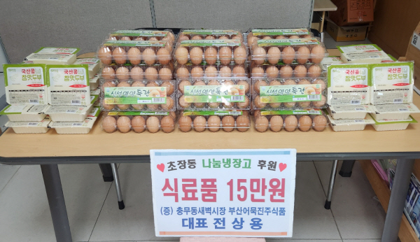 Ãæ¹«µ¿»õº®½ÃÀå ºÎ»ê¾î¹¬ÁøÁÖ½Äǰ ´ëÇ¥ Àü»ó¿ë ¾¾°¡ Áö³ 3¿ù 16ÀÏ ÃÊÀ嵿(µ¿Àå À±¼º¿í) ³ª´® ³ÃÀå°í¿¡ Ãë¾à°èÃþÀ» À§ÇÑ 15¸¸ ¿ø »ó´çÀÇ ½Ä·áǰÀ» ±âºÎÇß´Ù. Àü»ó¿ë ´ëÇ¥´Â 2024³âºÎÅÍ ÃÊÀ嵿Áֹμ¾ÅÍ¿¡ Äᳪ¹°, ¹é¹Ì, µÎºÎ, °è¶õ µîÀ» ²ÙÁØÈ÷ ±âºÎÇÏ¸ç ¾î·Á¿î ÀÌ¿ôÀ» À§ÇÑ ³ª´® ¹®È È®»ê¿¡ ¾ÕÀå¼°í ÀÖ´Ù.