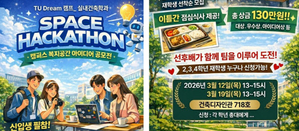 À̹ø °ø¸ðÀüÀº TU Dream Ä·ÇÁÀÇ ÀÏȯÀ¸·Î, ½ÅÀÔ»ýµéÀÇ Àü°ø Èï¹Ì¸¦ ³ôÀÌ°í ¼±ÈÄ¹è °£ ¼ÒÅëÀ» Ȱ¼ºÈÇÏ´Â µ¥ ÁßÁ¡À» µ×´Ù. ½ÅÀÔ»ý°ú ÀçÇлýÀº ÆÀÀ» ÀÌ·ï »ý¼ºÇü AI¸¦ Ȱ¿ëÇØ µ¿¸í´ëÇб³ÀÇ À¯ÈÞ°ø°£À» ´ë»óÀ¸·Î ¸®¸ðµ¨¸µ µðÀÚÀÎÀ» Á¦¾ÈÇß´Ù. À̸¦ ÅëÇØ Ä·ÆÛ½º °ø°£À» Àü°øÀÚÀÇ ½Ã°¢À¸·Î ºÐ¼®Çϰí ÀçÇØ¼®ÇÏ´Â °æÇèÀ» ½×¾Ò´Ù.