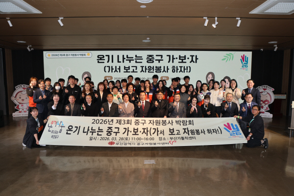 ºÎ»ê±¤¿ª½Ã Áß±¸ ÀÚ¿øºÀ»ç¼¾ÅÍ(¼¾ÅÍÀå Àå¹Ì¿µ)´Â 3¿ù 28ÀÏ(Åä) ºÎ»ê°¡Å縯¼¾ÅÍ¿¡¼ ¡®2026³â Á¦3ȸ Áß±¸ÀÚ¿øºÀ»ç¹Ú¶÷ȸ-¿Â±â ³ª´©´Â Áß±¸ °¡.º¸.ÀÚ(°¡¼ º¸°í ÀÚ¿øºÀ»ç ÇÏÀÚ!)¡¯¸¦ °³ÃÖÇß´Ù.