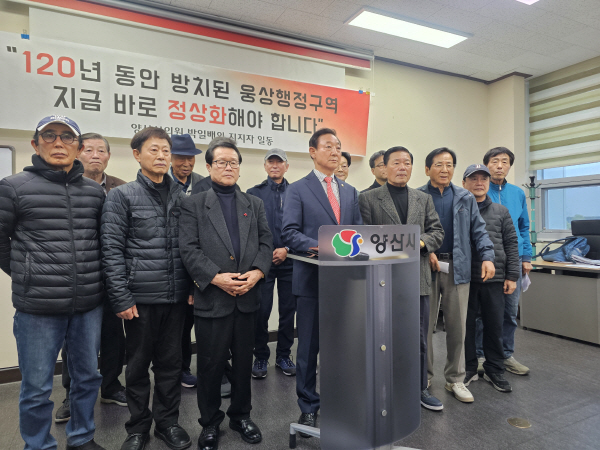 | ¹ÚÀÏ¹è ¾ç»ê½ÃÀÇ¿ø°ú Áö¿ªÀλçµéÀÌ 1ÀÏ ¾ç»ê½Ãû ÇÁ·¹½º¼¾ÅÍ¿¡¼ ¿õ»ó ÇàÁ¤±¸¿ª °³ÆíÀ» Ã˱¸ÇÏ´Â ±âÀÚȸ°ßÀ» °¡Á³´Ù. ±ÇȯÈì ±âÀÚ