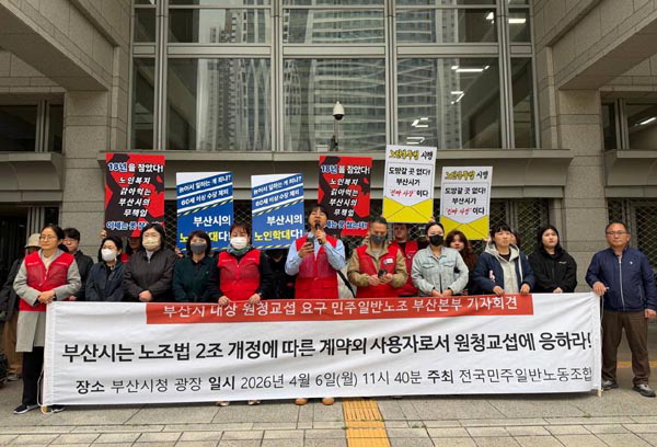 ¹ÎÁÖÀϹݿ¬¸Í Àü±¹¹ÎÁÖÀϹݳ뵿Á¶ÇÕ ºÎ»êº»ºÎ´Â 6ÀÏ ¿ÀÀü ºÎ»ê½Ãû ±¤Àå¿¡¼­ ±âÀÚȸ°ßÀ» ¿­°í ³ë¶õºÀÅõ¹ý(³ëµ¿Á¶ÇÕ ¹× ³ëµ¿°ü°èÁ¶Á¤¹ý 2¡¤3Á¶ °³Á¤ ¹ý·ü) ½ÃÇà¿¡ µû¸¥ ¿øÃ» ±³¼·À» ºÎ»ê½Ã¿¡ Ã˱¸Çß´Ù. À̵éÀº ¡°ºÎ»êÀÇ Àå±â¿ä¾ç±â°ü ³ëµ¿ÀÚ Æò±Õ ¿¬·ÉÀº 61.7¼¼Àε¥ Á¤ÀÛ Á¾»çÀÚº¹Áö¼ö´çÀº 60¼¼±îÁö¸¸ Áش١±¸ç ¡°±×¸¶Àúµµ 2008³â ÀÌÈÄ ÀÔ»çÀÚ´Â ÇÑ ´Þ 6¸¸ ¿ø¿¡ ºÒ°úÇÏ´Ï À̸¦ 18¸¸ ¿øÀ¸·Î ÀλóÇØ´Þ¶ó¡±°í ¸»Çß´Ù. ÀÌ¾î ¡°´Ù¹®È­¼¾ÅÍ ¹æ¹®±³À°Áöµµ»çµéÀº °£Á¢°í¿ëÀÌ ¾Æ´Ñ Á÷Á¢°í¿ëÀ¸·Î ÀüȯÇÏ°í °¡Á·¼ö´çµµ Áö±ÞÇÏ¶ó¡±°í °­Á¶Çß´Ù.